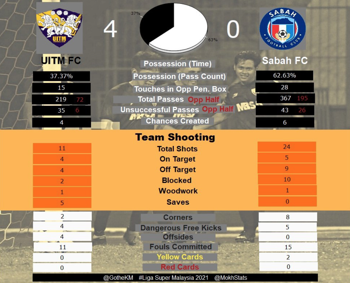 In a pretty uneven game so far, UITM has gone against the flow to score twice against possession-dominant Sabah FC. Once again, proving that a direct, defensive solid style of football maybe the way to succeed in MSL.